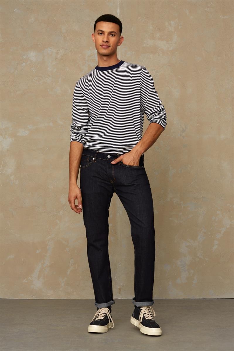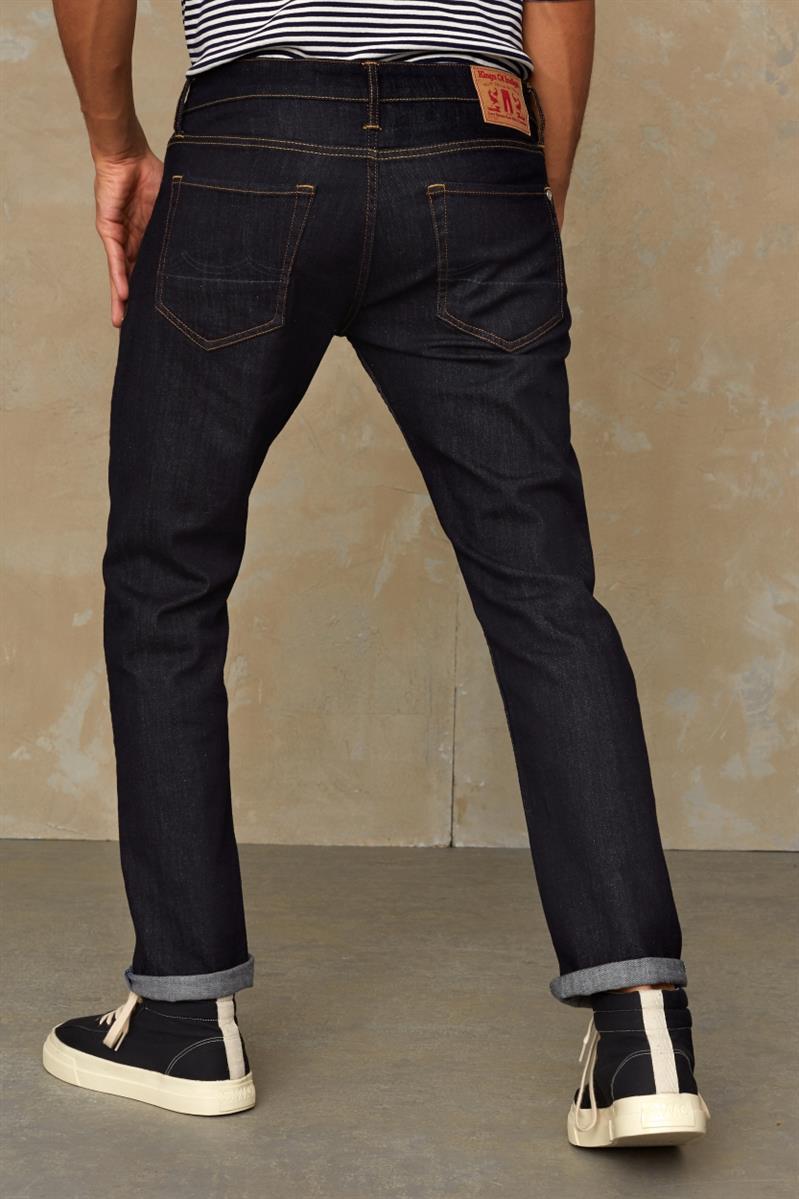 Rinse: eine fast unbehandelte Jeans: Der Stoff wurde lediglich behandelt, damit er nicht so steif ist, wie frisch gefärbte Jeans. Die Waschung ist ein tiefes, dunkles blau und wird sich mit den Jahren deine ganz eigene Waschung ergeben.