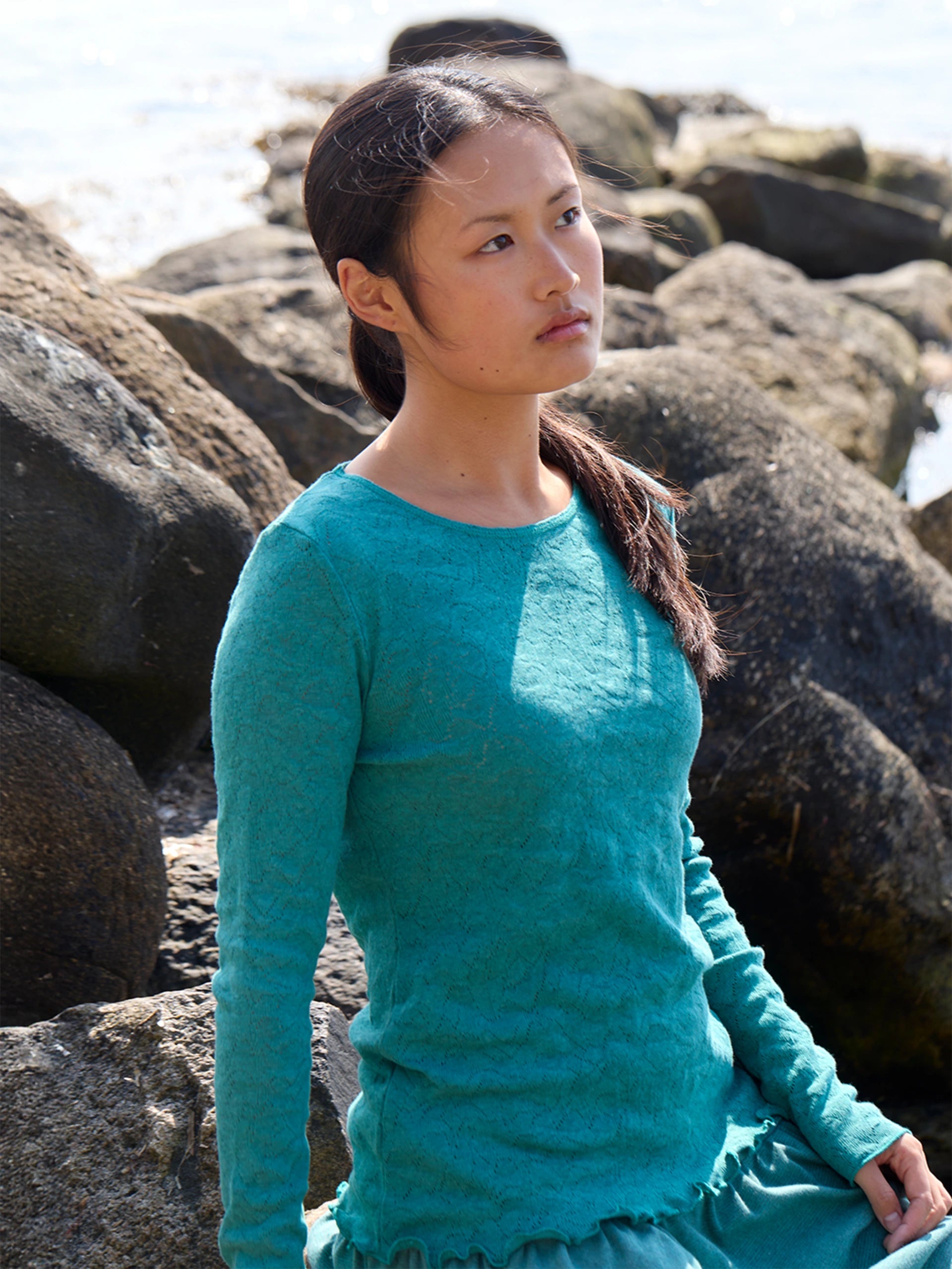 Langarmshirt mit Strickmuster aus Bio-Baumwolle